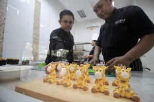 “Karena bulan ini merupakan bulannya Jerapah, maka kami berkreasi untuk membuat oleh-oleh kepada tamu tentang jerapah. Selain itu, Baobab Safari Resort juga memiliki icon satwa asal Afrika yaitu jerapah, sehingga fondant giraffe ini bisa diingat kepada tamu jika berkunjung kemari,” kata Sous Chef Pastry Baobab Safari Resort & Taman Safari Indonesia II Jatim, Dion Adi Saputra.