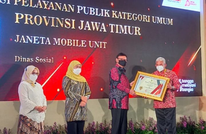 Jatim detik – Melalui Inovasi Janeta (Jasa Layanan Netra) Mobile Unit, Dinas Sosial (Dinsos) Provinsi Jawa Timur mendapatkan penghargaan TOP 30 terbaik dari Kemenpan RB pada Kompetisi Inovasi Pelayanan Publik (KOVSBLIK) 2021. Piagam penghargaan tersebut, diberikan oleh Menteri Pendayagunaan Aparatur Negara dan Reformasi Birokrasi (Menpan RB) Tjahjo Kumolo kepada Kepala Dinas Sosial Jatim M. Alwi, dengan disaksikan Gubernur Jawa Timur Khofifah Indar Parawansa.