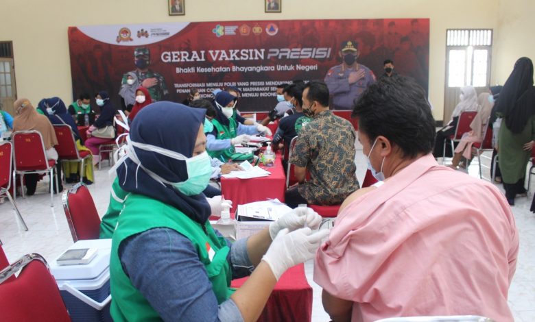 Jatim detik – Polda Jawa Timur menggelar Gerai Vaksin Presisi untuk usia 12 tahun ke atas di Aula Ponpes Sabilurrosyidin Annur, Gayungan, Surabaya, Sabtu (23/10). Acara hasil kerjasama dengan DPW LDII Jawa Timur ini bertujuan untuk mempercepat kekebalan komunal (herd immunity) serta meningkatkan pergerakan sektor ekonomi di wilayah Jawa Timur.