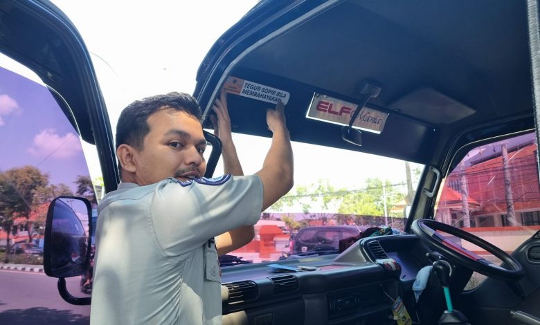 Cagah Laka Jelang Mudik Lebaran, Jasa Raharja Pamekasan Pasang Sticker Imbauan Keselamatan