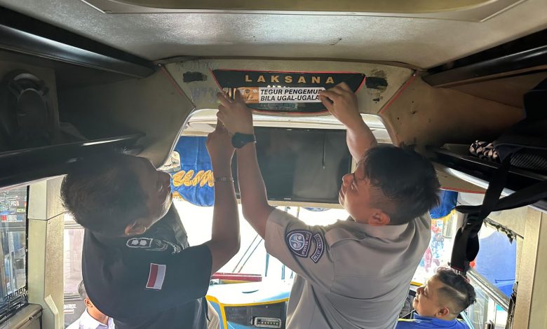 Cegah Laka Lantas Bus Jelang Lebaran 2024, Jasa Raharja Pasang Sticker Himbauan Keselamatan