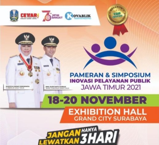 Jatim detik – Kegiatan Pameran dan Simposium Inovasi Pelayanan Publik Jawa Timur 2021 rencananya akan digelar Kamis (18/11) Besok di Grand City Surabaya. Kegiatan itu merupakan rangkaian Hari Jadi ke-76 Provinsi Jawa Timur.