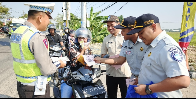 Aksi simpatik ini sebagai sarana sosialisasi dengan memberikan himbuan keselamatan dan souvenir kepada pengendara yang taat dan patuh aturan lalu luntas.