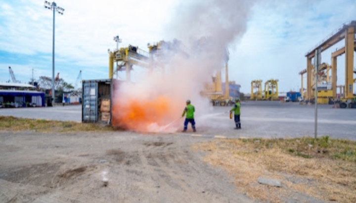 Jatim detik – Di area Lapangan Penumpukan Kontener Terminal Petikemas Surabaya (TPS) tampak si jago merah yang melahap habis kontener, pekerja di sekitar lokasi kejadian tampak bergegas menyelamatkan diri, dan beberapa sigap mengambil APAR (Alat Pemadam Api Ringan) untuk memadamkan api yang sudah mulai membesar.